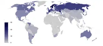 Phil Zuckerman's 2008 book Society without God notes that Denmark and Sweden, "probably the least religious countries in the world, and possibly in the history of the world", enjoy "among the lowest violent crime rates in the world [and] the lowest levels of corruption in the world".[26] Zuckerman identifies that Scandinavians have "relatively high rates of petty crime and burglary", but "their overall rates of violent crime—such as murder, aggravated assault, and rape—are among the lowest on earth".[27] In 2009, New York Times columnist Peter Steinfels commented that Society Without God provides evidence that an irreligious society can flourish.[28] Society Without God won the silver prize in Foreword magazine's religion book of 2008,[29] and was featured in The New York Times.[30]