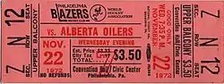 The Philadelphia Blazers were an ice hockey franchise in the World Hockey Association (WHA) for the 1972–73 WHA season based in Philadelphia. The team's home ice was the Philadelphia Convention Hall and Civic Center.[1][2][3][4][5][6]
