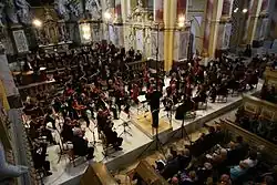 The musicians of the Philharmonie Festiva, which was founded in 2008, come from renowned orchestras in Germany and neighboring countries. According to Gerd Schaller, "the orchestra is not a short-term, active project orchestra, but the intention was to build and develop a top-class orchestra, a festival orchestra, in the long term, to undertake his own ambitious projects at the Ebrach Summer Music Festival; certainly synonymous with something elitist claim."[1][2]