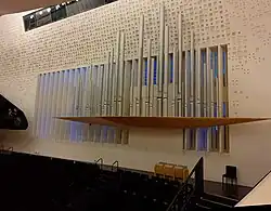 The Philharmonie de Paris contracted the Austrian organ-maker Rieger Orgelbau to construct a pipe organ. It is made up of 6,055 pipes with 91 stops and was designed to complement the building's architecture. The organ debuted with a concert on 28 October 2015, with an improvisation by Thierry Escaich and a performance of Symphony No. 3 (Saint-Saëns).[12][13] Another organ of 53 stops on 3 manuals and pedals had already been built in 1991 by the same firm for the nearby Conservatoire de Paris (CNSMDP).[14][15]