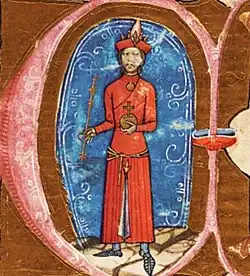 ![]() The arrival of papal legate Philip to the Kingdom of Hungary in early 1279, as depicted in the mid-14th century Illuminated Chronicle | |