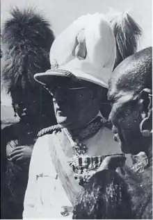 ![]() Sir Philip Euen Mitchell in Kenya, talking to tribal chiefs in 1952 | |