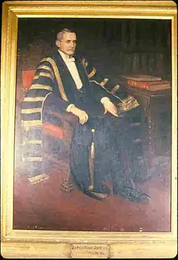 Jones took much interest in education and became a member of the senate of the University of Sydney in 1881, and was vice-chancellor from 1904 until 1906. He was a trustee of the Australian Museum, was connected with the Kindergarten Union, was an early member of the Linnean Society, and was for 51 years a member of the Royal Society of New South Wales. He was also actively interested in many charitable institutions and in Trinity Uniting Church, Strathfield, of which he was a deacon. He was a member of council of Camden College, the Congregational theological college and grammar school.[1] Jones was knighted in 1905 for his work in combating tuberculosis[1] and died in Sydney, survived by three sons and four daughters. Jones was buried in the Congregational section of Rookwood Cemetery.[1]