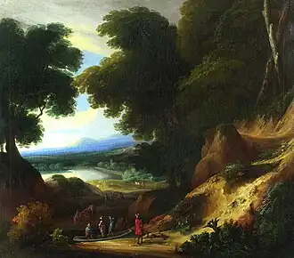 Philip van Dapels was a landscape painter who specialized in wooded landscapes with figures. He has only been rediscovered not so long ago and very few works have been attributed to him. These include two works with the monogram 'PVD' in private collections.[2] Two more works, recently in auctions, have also been attributed to the artist.[5][6]