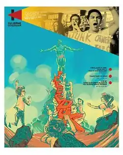 The Collegian was first known as the College Folio (1910) and then Varsity News (1917).[3] As the College Folio, it was one of the first undergraduate journals in the Philippines.[4] The Philippine Collegian was officially established in 1922. Since then, it has become a symbol for academic freedom, critical thinking, and journalistic integrity and excellence.[5] In 1935, the Collegian published Teodoro Agoncillo's review of Ricardo Pascual's book Dr. Jose Rizal beyond the Grave, despite threats of excommunication from the Catholic Church. And in 1951, editor in chief (EIC) Elmer Ordoñez exposed the government's intervention in UP affairs, particularly in the aftermath of UP President Bienvenido Gonzalez's resignation. That period also saw the accommodation of the Filipino language in its content. During the post-war years, the Collegian became increasingly progressive in tackling university-based issues, particularly on "sectarianism" and favoritism in the administration. Despite the widespread conservatism, which equated nationalist sentiments with "communist threats", the Collegian continued publishing articles from socialism to the Hukbalahap movement.