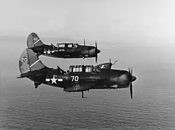 - 40 SB2C Helldiver,4 SBD-5 Dauntless dive bombers (Lt. Cmdr. J.W. Runyan, USNR)