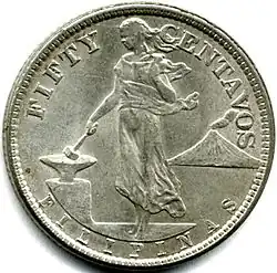 The Philippine fifty-centavo coin (Filipino: Limampung sentimo) (50¢) was a denomination of Philippine currency. It was minted for the Philippines from 1864[1] to 1994 and was demonetized in 1998.
