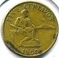 The last minting of this first coin was in 1928. A smaller version was minted between 1930 and 1935.[2] In 1937 the coat of arms was changed to a Philippine one and this coin was issued until 1945[3]