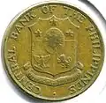 In 1958, minting of the centavo resumed with another coat of arms on the reverse. The inscription around the coat of arms was changed to 'Central Bank of the Philippines'.