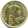 The five-sentimo coin (5¢) coin is the second-lowest denomination coin of the Philippine peso after the one sentimo.