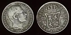 - ^ "20 Céntimos de Peso - Alfonso XII". en.numista.com. Retrieved October 23, 2021.