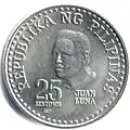 The twenty-five-sentimo coin (25¢) is the third-lowest denomination coin of the Philippine peso.
