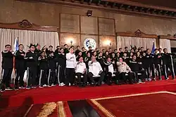 Large portion of the delegation taking a group photo with President Rodrigo Duterte and other government and sports officials after Duterte led the ceremonial send-off of the delegation.