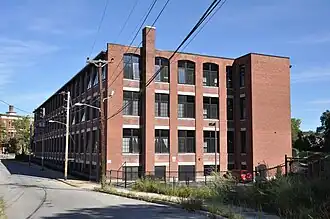 The Philmont Worsted Company Mill is an historic mill building at 685 Social Street in Woonsocket, Rhode Island. The large three-story brick building was erected in 1919 by Joseph and Theofile Guerin, Belgian investors brought to Woonsocket by the promotional activities of Mayor Aram Pothier. Unusually for the Guerins, the mill used the "English system", instead of the French system of their other operations, for the production of worsted wool yarns. The Philmont Company was shuttered by the Great Depression in 1933, but the building was later used by other textile producers until 1955.[2] The building has been converted to residences.