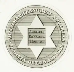 In October 1832, twelve students began the Philomathean Society at New York University.[1] The society's rival was the Eucleian Society.[1] While both societies forbade membership in their rival society, early records show that early members were sometimes expelled or resigned to join the rival society.