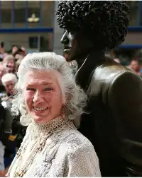![]() Lynott in Dublin by her son Phil's statue in 2013 | |