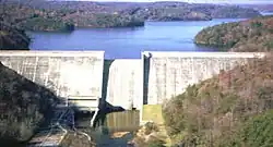 Philpott Dam is a concrete, gravity dam on the Smith River in Franklin and Henry counties in the U.S. state of Virginia. It impounds Philpott Lake.
