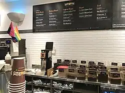 Other popular drinks include the Iced Coffee Rose, which is a blend of coffee, rose water, and rose petals, and the Mocha Tesora, which contains a chocolate coffee, milk, and Ghiradelli cocoa powder.[20]