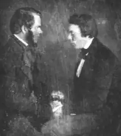 About 1836 Charles Poyen came to Maine from France on an extended lecture tour in New England about mesmerism, also widely known as hypnotism.[3] He was a French mesmerist who followed in the tradition of Armand-Marie-Jacques de Chastenet, Marquis of Puységur. The McClure’s magazine 1907 biographical serial of Mary Baker Eddy written by Willa Cather & Georgine Milmine started the misunderstanding that Quimby was a follower of Poyen and followed him around—which is not supported by the Quimby family or Quimby's writings. In fact, Quimby wrote about seven years later about hearing Poyen lecture: "Mesmerism was introduced into the U[nited] State[s] by M. Charles Poyen, a French gentleman, who did not appear to be highly blest with the powers of magnetising to the satisfaction of his audience in his public lectures. I had the pleasure of listening to one of his lectures, & pronounced it a humbug as a matter of course. And that his remarkable experiments, which were related, were, in my belief, equally true with witch craft—I had never been a convert to witch craft, nor had even had any personal interviews[?] with ghosts or hobgoblins & therefore considered all stories bordering on the marvelous as delusive—".[4] Instead it appears that it was Robert Hanham Collyer, another practitioner of animal magnetism, who visited Belfast in 1841, who attracted Quimby's interest: