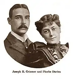 On June 7, 1882 Davies married in San Francisco Joseph R. Grismer, then a lead actor at the Baldwin Theatre.[4][5] In September, 1883 the two joined a company of actors from the Baldwin in a tour that was timed to correspond with various county fairs throughout California. Under the direction of Sam O. Mott the troupe performed a series of plays including Chispa by the California playwright, Clay M. Greene. Davies portrayal of the title role garnered her an offer by one theatrical producer to make her a star on the New York stage, an opportunity the not yet twenty-year-old actress felt not prepared to accept.[6][7] Later that year the couple formed the Grismer-Davies Organization and began playing theaters throughout California and eventually on tours that encompassed the Western States and Provinces of North America.[3]