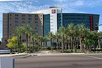 Phoenix Children's Hospital is a freestanding pediatric acute care children's hospital located in Phoenix, Arizona. The hospital has 484 pediatric beds[3] and is affiliated with the University of Arizona College of Medicine – Phoenix. Phoenix Children's also partners with Valleywise Health (formerly the Maricopa Integrated Health System) for a 3-year pediatric residency training program. The hospital provides comprehensive pediatric specialties and subspecialties including inpatient, outpatient, emergency, trauma, and urgent care to infants, children, teens, and young adults 0–21[4][5][6] throughout Arizona and the surrounding states. The hospital sometimes also treats older adults that require pediatric care.[7] Phoenix Children's Hospital also features a Level 1 Pediatric Trauma Center, the only in the state.[8]