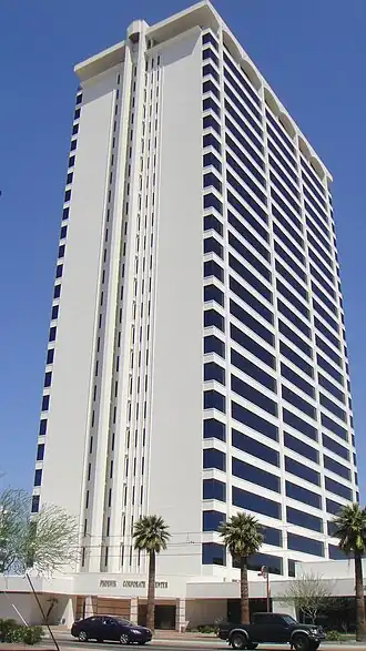 The Phoenix Corporate Tower (formerly known as First Federal Savings Building) is a 26-story high-rise office building in Phoenix, Arizona. It was built in 1965 and designed in the International Style. The tower was built two miles north of Downtown Phoenix in the Central Corridor. At that time, corporate investment turned its attention away from downtown. When the tower was completed, it was the tallest building in Phoenix, taking that distinction away from the Executive Towers Condominiums. It remained the tallest building for six years until the Wells Fargo Plaza was completed in 1971.