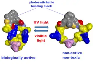 - ^ a b Babii O, Afonin S, Berditsch M, Reisser S, Mykhailiuk PK, Kubyshkin VS, et al. (March 2014). "Controlling biological activity with light: diarylethene-containing cyclic peptidomimetics". Angewandte Chemie. 53 (13): 3392–3395. doi:10.1002/anie.201310019. PMID 24554486.
