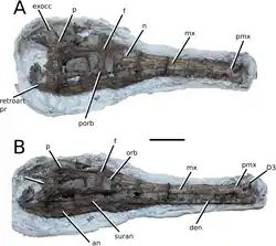 - ^ Martin, Jeremy E.; Suteethorn, S.; Lauprasert, K. (February 2019). "A new freshwater teleosaurid from the Jurassic of northeastern Thailand" (PDF). Journal of Vertebrate Paleontology. 64 (2): 239–260. doi:10.1080/02724634.2018.1549059. S2CID 91988192.