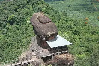 Phu Thok has two peaks, Phu Thok Yai and Phu Thok Noi.[3] Wat Phu Thok, an important Buddhist temple, is in a cave near the top of the smaller peak.[4] The summit of this massive rocky hill can be reached via a wooden walkway. The top has views of the surrounding flat countryside.[5]