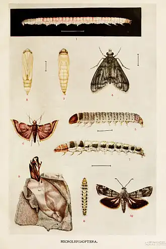 The fig leaf roller is an defoliator pest of Ficus species, reported in South and Southeast Asia, including Myanmar, Sri Lanka, India, and Pakistan.[3] A variety of host plants have been documented, including Ficus glomerata, F. religiosa, F. carica, F. bengalensis, F. indica, F. tisela, and Paulownia sp. (Scrophulariaceae).[2][4]