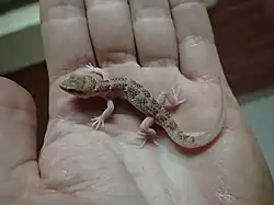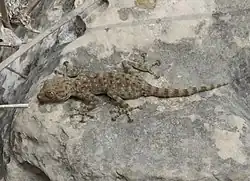 The Phyllodactylidae are a family of geckos (Gekkota) consisting of 163 species in 10 genera,[1] distributed throughout the New World, North Africa, Europe and the Middle East. The family was first delineated based on a molecular phylogenetic analysis in 2008, and all members possess a unique single codon deletion in the phosducin (PDC) gene.[2] The phyllodactylid genus Bogertia has been recently synonymized with Phyllopezus.[3] The name of the family comes from the leaf shaped fingers.