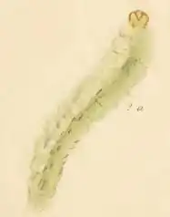 The larvae feed on small scabious (Scabiosa columbaria).[2]