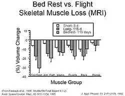 - ^ Ferrando, AA; Stuart, CA; Brunder, DG; Hillman, GR (October 1995). "Magnetic resonance imaging quantitation of changes in muscle volume during 7 days of strict bed rest". Aviation, Space, and Environmental Medicine. 66 (10): 976–81. PMID 8526835.