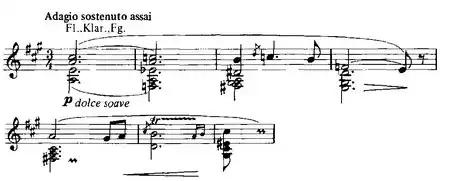 - The key musical idea of this concerto is first heard in the first clarinet, accompanied by no more than four other woodwinds: a sequence of two chords—an A major chord with a C♯ on top, then a dominant seventh on F♮. One note connects the two chords—an A.