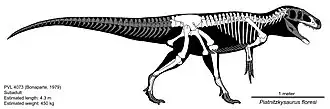 Piatnitzkysaurus (/ˌpiːətnɪtskiːˈsɔːrəs/ pee-ət-NITS-kee-SOR-əs; meaning "Piatnitzky's lizard") is a genus of tetanuran theropod dinosaur that lived approximately 179 to 177 million years ago during the lower part of the Jurassic Period in what is now Argentina. Piatnitzkysaurus was a moderately large, lightly built, bipedal, ground-dwelling carnivore that could grow over 4 m (13.1 ft) long.