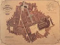 The origins of Piazza del Duomo can be traced back to the vision of the lord of Milan Azzone Visconti.[1][2] In 1330, Azzone ordered the demolition of the taverns that circled the two central churches of Milan of the time, the Basilica di Santa Maria Maggiore and the Basilica of Santa Tecla, to create a market square, called "Piazza dell'Arengo", which is the first incarnation of what is now Piazza del Duomo. The piazza was named after the arengario (also known as the "broletto"), i.e., the seat of the local government. None of the original buildings of Piazza dell'Arengario has survived.