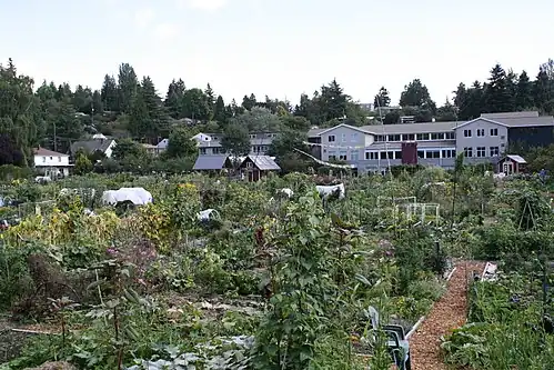 Picardo Farm is a 98,000 sq ft (9,100 m2) parcel of property in Wedgwood, Seattle, Washington, consisting largely of 281 plots used for gardening allotments.[1] It is the original P-Patch (the local term for such community gardens): the "P" originally stood for "Picardo", after the family who owned it.[2] The Picardos' land went beyond the present P-Patch; it also encompassed the property of the adjacent Reform Jewish Temple Beth Am and of University Prep, an independent private co-educational, non-sectarian day school for grades six through twelve. The land was part of what had once been known as the Ravenna Swamp.[3]