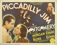 Piccadilly Jim is a 1936 American romantic comedy film directed by Robert Z. Leonard and starring Robert Montgomery, Frank Morgan, Madge Evans and Billie Burke. The film is based on the 1917 novel Piccadilly Jim written by P. G. Wodehouse. The first film version of the 1917 novel was Piccadilly Jim (1919) starring Owen Moore and Zena Keefe. A 2004 remake was Piccadilly Jim starring Sam Rockwell and Frances O'Connor.