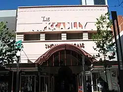 The Piccadilly Cinema Centre (formerly Piccadilly Theatre) and Piccadilly Arcade are located at 700-704 Hay Street, Perth, Western Australia. It is an art deco style cinema and shopping arcade, designed by architect William T. Leighton for mining entrepreneur Claude de Bernales. The theatre and arcade opened in 1938, with the arcade connecting Hay Street through to Murray Street.
