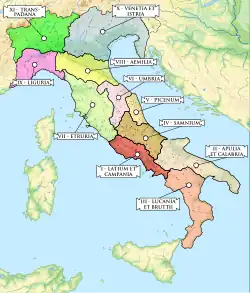 In 27 BC Augustus established a colony at Asculum. The territory inhabited by the Piceni during the Augustan age was divided between Regio V (Picenum) and Regio VI (Umbria et ager gallicus picenus). It was reunified during the empire of Diocletian in the Flaminia et Picenum region.