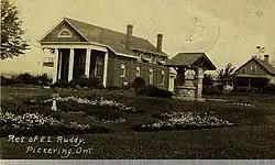 The old grounds of Pickering College at Pickering were eventually sold at a distressed price of $11.00 per acre (for a total of $550.00) to a man by the name of Ernest L. Ruddy. Mr. Ruddy, who hailed from Toronto, also bought the surrounding lands for approximately $4320. 16. Ruddy converted the former gymnasium into a large, lavish summer home, complete with mezzanine, four bedrooms created in part by splitting the original single storey building into two. An artesian well was placed close by. Mr. Ruddy called the property 'The Hermitage', and it would continue to serve him and his family until 1960, when it was sold.