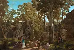 The novel was written over a total of two weeks at Lindsay's home in Mulberry Hill.[8] In thinking of a title, Lindsay recalled the painting At the Hanging Rock by William Ford, which had hung in her husband Daryl's office at the National Gallery of Victoria,[10] and chose to incorporate it into the title as it was "simple and pretty, and belied the horrors hidden within."[8] In an interview after Lindsay's death, academic Terrence O'Neill, who had befriended Lindsay, remarked the supernatural elements of the novel: "It was clear that [Joan] was interested in Spiritualism, and longed for some spiritual dimension in her life, but she didn't feel safe bringing that side of her out in front of her husband. So I think she channelled it into her writing. I know she was very interested in Arthur Conan Doyle and his belief in and theories about Spiritualism, nature and the existence of spirits."[8]