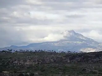 The Pico do Itambé State Park is divided between the municipalities of Santo Antônio do Itambé, Serro and Serra Azul de Minas in Minas Gerais. It has an area of 4,696 hectares (11,600 acres).[1][a] It is 357 kilometres (222 mi) from Belo Horizonte. The word "Itambé" is of indigenous origin and means "sharp stone".[3] The park protects the Serra do Espinhaço, a mountain range.[4] The highest peak is the 2,002 metres (6,568 ft) Pico do Itambé, a major landmark of the state. It contains various springs and headwaters of the Jequitinhonha and Doce rivers.[1]