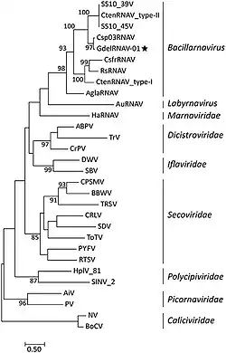 - ^ Le Gall, Olivier; Christian, Peter; Fauquet, Claude M.; King, Andrew M. Q.; Knowles, Nick J.; Nakashima, Nobuhiko; Stanway, Glyn; Gorbalenya, Alexander E. (2008-04-01). "Picornavirales, a proposed order of positive-sense single-stranded RNA viruses with a pseudo-T = 3 virion architecture". Archives of Virology. 153 (4): 715–27. doi:10.1007/s00705-008-0041-x. PMID 18293057. S2CID 2303309.