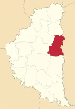Pidvolochysk Raion (Ukrainian: Підволочиський район) was a raion (district) in Ternopil Oblast in western Ukraine. Its administrative center was the urban-type settlement of Pidvolochysk. The raion was abolished on 18 July 2020 as part of the administrative reform of Ukraine, which reduced the number of raions of Ternopil Oblast to three. The area of Pidvolochysk Raion was merged into Ternopil Raion.[1][2] The last estimate of the raion population was 40,668 (2020 est.).[3]