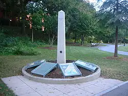 The park's first bathhouse was opened in 1911.[24] Swimming in the lake was allowed until 1973, when the city opened a pool in the park.[24] The same year the first bathhouse was opened, the Peace Monument, a Confederate monument, was dedicated in the park, near the 14th Street gate.[25]