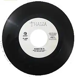 "Pienso en Ti" (Spanish for "I think of you") is a song by Mexican singer Thalía from her self titled debut solo album. It was released by Melody/Fonovisa as the album's third single after the controversies generated by the previous songs.[1] It achieved the album's best performance on the Mexican charts. About 20 years after the release, the song was part of the singer's Primera Fila live show and appeared as a bonus track for the special edition of the album: Primera Fila...un año después, released in 2010.[2]