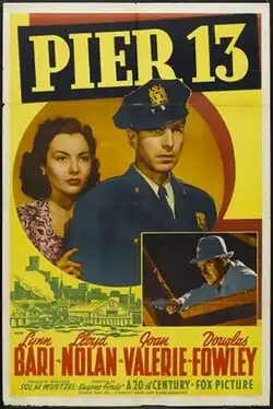Pier 13 is a 1940 American mystery film directed by Eugene Forde and starring Lynn Bari, Lloyd Nolan and Joan Valerie.[1] It is a remake of the 1932 film Me and My Gal with Spencer Tracy and Joan Bennett.[2] The film's sets were designed by the art directors Lewis H. Creber and Richard Day. It was made by Twentieth Century Fox,[3] and produced by Sol M. Wurtzel.[2]