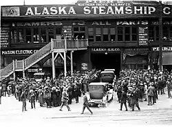Pier 21 and Pier 1 to its south were built between 1901 and 1904, replacing Yesler's Wharf.[3] In 1904, Joshua Green's La Conner Trading,[3] by then a subsidiary of the Puget Sound Navigation Company, was operating jointly with businessman H.B. Kennedy as the Navy Yard Route on the Seattle – Bremerton run. Disposing of three vessels, including the Inland Flyer, Athlon, and the sternwheeler Port Orchard, the Navy Yard route ran six sailings a day from Pier 2 to and from Bremerton, Washington.[4]