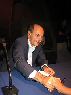 On 25 October 2009, Bersani defeated incumbents Dario Franceschini and Ignazio Marino in the Democratic Party leadership election, thus becoming Italy's main opposition leader, scoring 55.1% among party members.[4] Since 7 November 2009, as decided by the National Assembly, Pier Luigi Bersani officially took office as Secretary of the Democratic Party of Italy.[5] He defeated the mayor of Florence Matteo Renzi in the 2012 primary election.[6]
